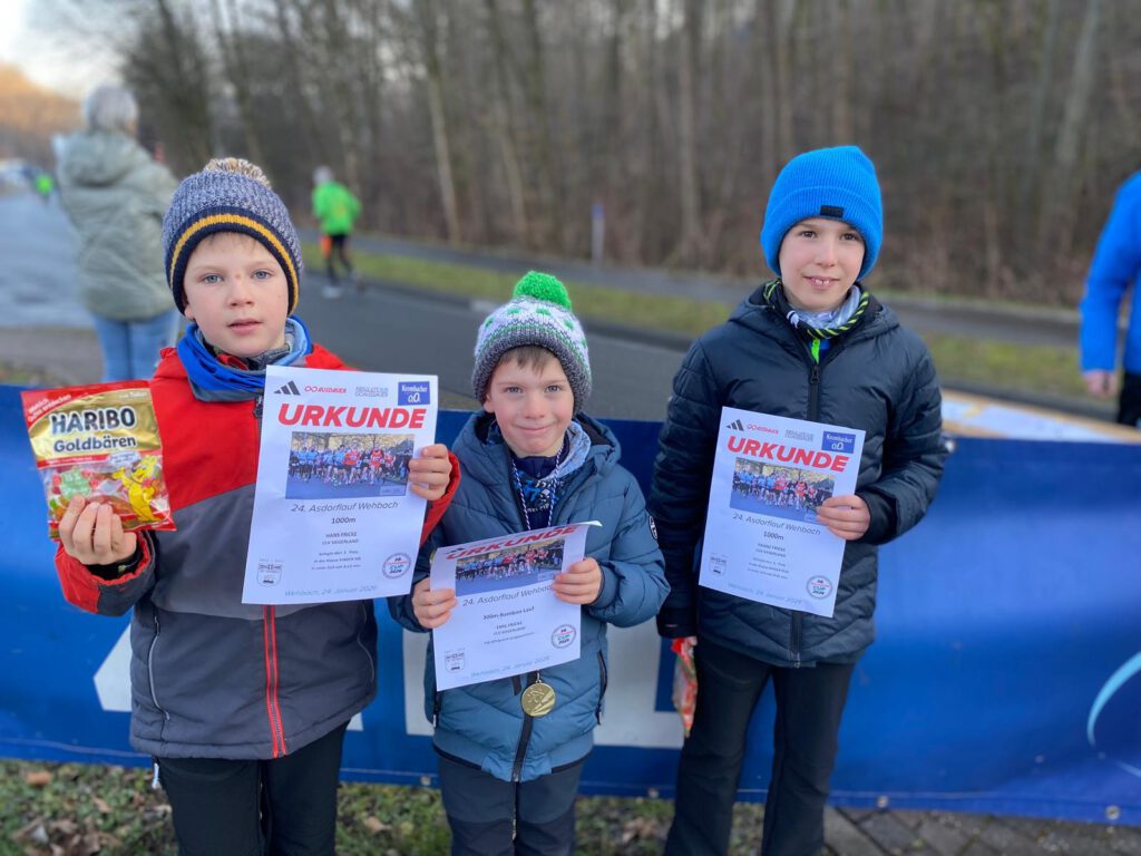 Emil Fricke über die 300m im Bambini Lauf, Sein Bruder Hans gewann die M8 über die 800m, Carlo Rosenkranz wurde 4. Franz Fricke wurde Gesamt 3. und Siegte in seiner AK M10 über die 1000m und Felix Rosenkranz belegte Platz 8 der M12.
